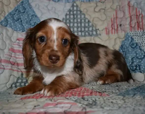 They call me "Dexter" I'm a short hair red dapple male. I'm AKC Registered.My parents are Twizzler and Marley. I'm $1,000 On Sale for $850 with Limited Registration. With Limited Registration means that the dog is registered but No Litters produced by that dog are eligible for registration. For more information about me please Email Debbie at info@debbiesdachshundpuppies.com